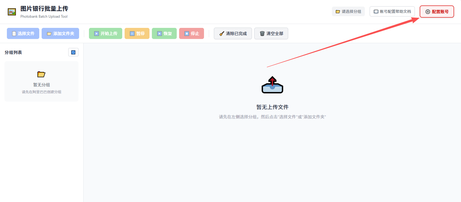如果你需要上传图片到阿里巴巴国际站, 需要先配置账号.
