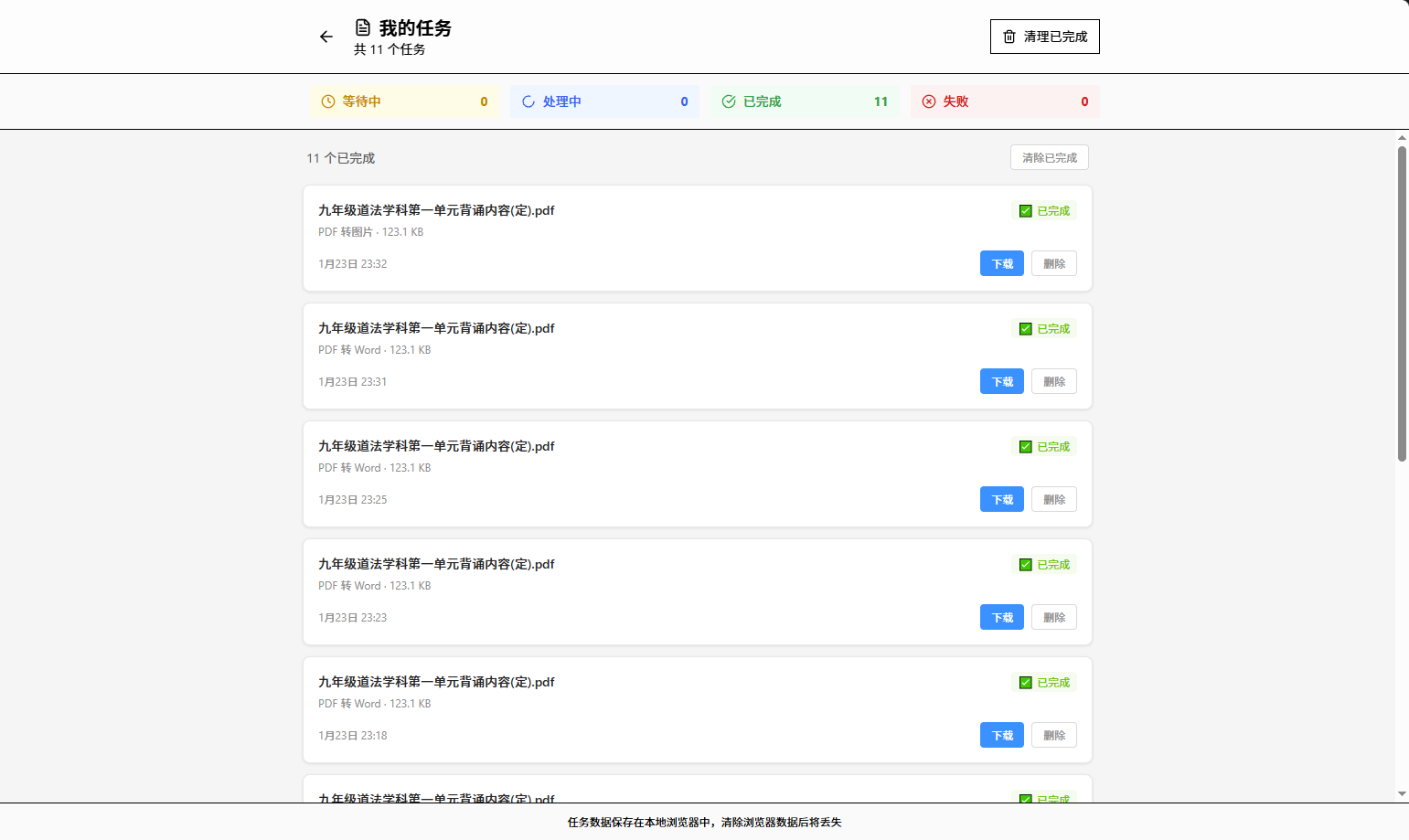 公司文件一般为机密文件,以下工具由 AI 自动开辟临时空间实现文件转换,处理后自动销毁,安全高效,不会造成文件泄露。